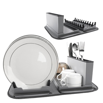 Mathome新キッチン折りたたみ式多機能皿乾燥ラックカトラリー収納オーガナイザーマイクロファイバー皿マット付き